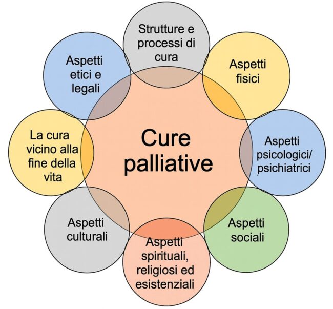 Cure palliative non significa rinunciare, ma prendersi cura in un altro modo nel momento in cui la malattia non risponde più a trattamenti specifici e volge ad una prognosi infausta. Sono gestione dei sintomi, dispnea, dolore, affaticamento, sostegno psicologico, aiuto ai caregivers, discussione su scelte di trattamento e dispositivi, rispetto degli aspetti religiosi, spirituali e esistenziali(Figura 1).