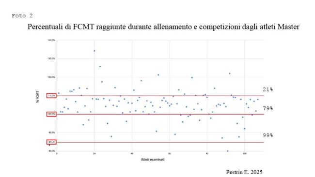 Scena comune, almeno così viene riferito, durante l’esecuzione di molti test da sforzo. L’interruzione non avviene per incapacità di mantenere il ritmo delle 60 pedalate al minuto (RPM), ma perché si ritiene “sufficiente” l’intensità raggiunta. Quel “sufficiente” coincide spesso con il raggiungimento dell’85% della frequenza cardiaca teorica massima (FCMT). A questo si aggiunge che la causa dell’interruzione viene molto spesso attribuita a un presunto “esaurimento muscolare”. Ma se “potevo continuare ancora”, di che esaurimento si tratta? La prova da sforzo nasce nel 1928 per valutare, durante sforzo e nel recupero, la capacità di lavoro, la riserva cronotropa, la risposta pressoria, la comparsa di ischemia, aritmie e sintomi. Per farlo, il test deve spingersi fino al limite funzionale reale, cioè fino a quando il soggetto non riesce più a mantenere le 60 RPM o compaiono criteri clinici per interromperlo. Non è un test da “percentuali raggiunte”, ma un esame da osservare nel suo andamento fisiopatologico. Il concetto dell’85% è una soglia priva di basi fisiologiche solide. Non esiste alcuna evidenza che giustifichi l’interruzione del test al raggiungimento di tale valore. Al contrario, è proprio da quel punto che l’esame inizia a essere realmente valutabile. Già nel 1981, uno studio su oltre 7.000 pazienti dimostrò che fermarsi all’85% della FCMT, rispetto al 100%, comportava la perdita di quasi il 40% delle alterazioni elettrocardiografiche, dei sintomi o delle aritmie che comparivano solo proseguendo fino al massimale. Più recentemente, il gruppo di Alessandro Biffi ha confermato il dato su 460 soggetti sani (età media 39 anni): se il test fosse stato interrotto all’85%, il 50% delle alterazioni ECG e il 35% delle anomalie cardiovascolari sarebbero passate inosservate. “Due indizi non fanno una prova”, ma cominciano a essere più che convincenti. Il test è diventato, purtroppo, un atto tecnico: interrotto troppo presto o condotto con ramping eccessivo, il risultato è una valutazione solo apparentemente rassicurante, ma clinicamente povera. Le alterazioni più significative, ischemiche, aritmiche, ipertensive o emodinamiche, emergono proprio negli ultimi minuti, quando il sistema cardiovascolare è spinto al massimo. Fermarsi all’85% significa rinunciare a quella finestra diagnostica. Se questo è vero nella valutazione del paziente, vale ancor più per gli atleti master: una popolazione sportiva dedita a maratone, granfondo e triathlon, gare massacranti con frequenze cardiache di allenamento e di gara ben oltre l’85% della FCMT. Per documentarlo, con il dottor Emanuele Pestrin, giovane specializzando frequentatore del centro di riferimento regionale per lo sport nei giovani con cardiopatia, abbiamo condotto un questionario su oltre cento atleti master praticanti sport di endurance (Figura 1): il 99% raggiunge almeno l’85%, il 79% supera il 100% e il 21% oltrepassa addirittura il 110% della FCMT (Figura 2).